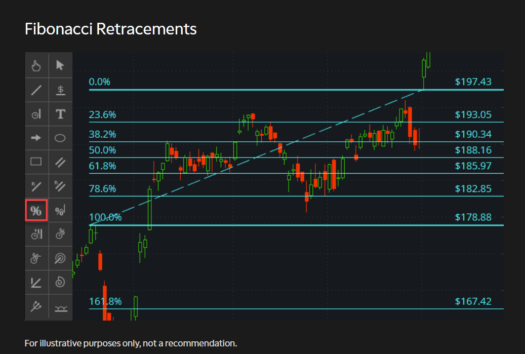 Fibonacci retracements are used to identify potential support and resistance levels during a price correction within a larger trend. Here’s how to use them: