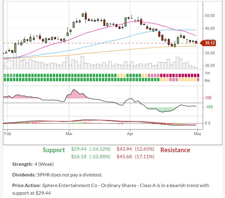 Technical Summary: The stock has underperformed the market when compared to the S&P 500 over the last 50 trading days. SPHR's chart formation indicates the stock is in a strong downward trend.