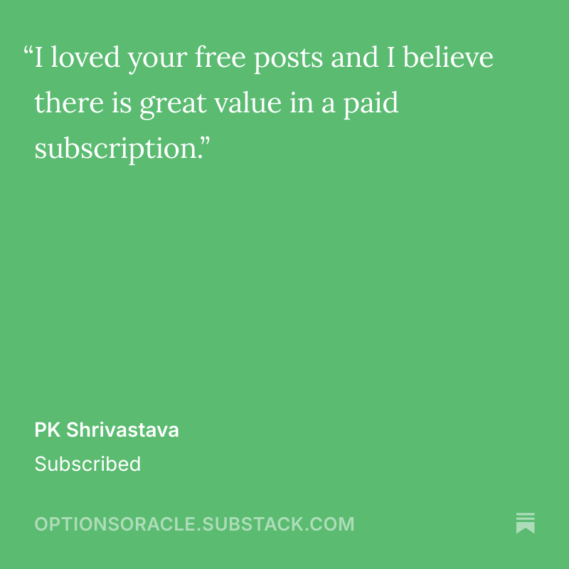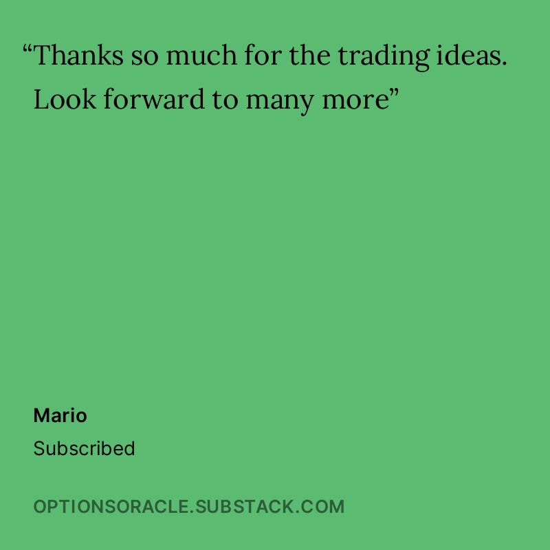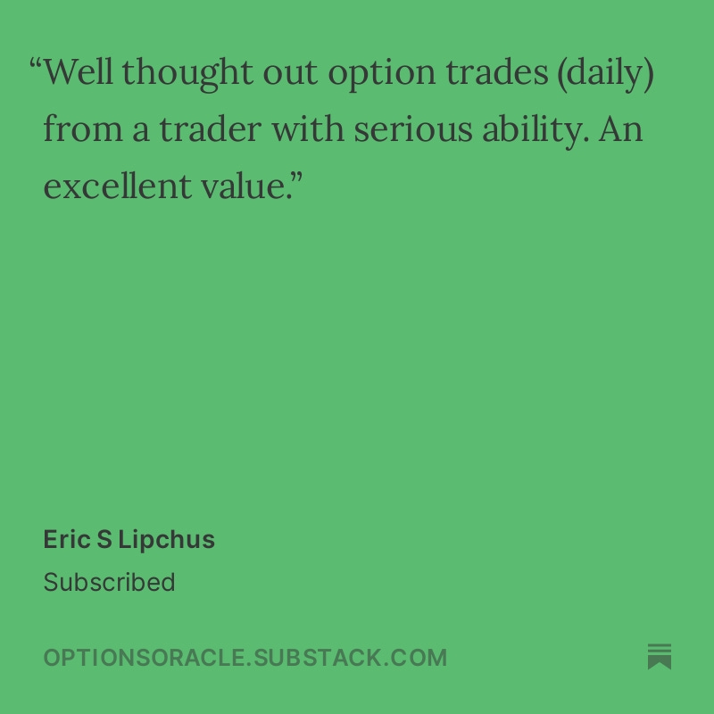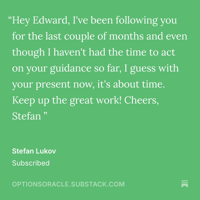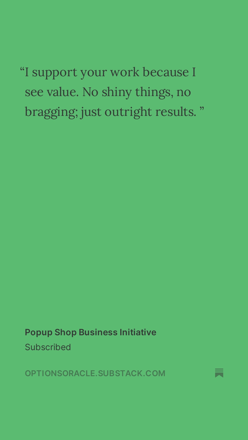 Thank you for taking the time to share your stories and experiences. Your feedback helps this publication to grow, improve, and strive to exceed your expectations continually. I am committed to maintaining the high standards that you have come to expect from The Options Oracle.